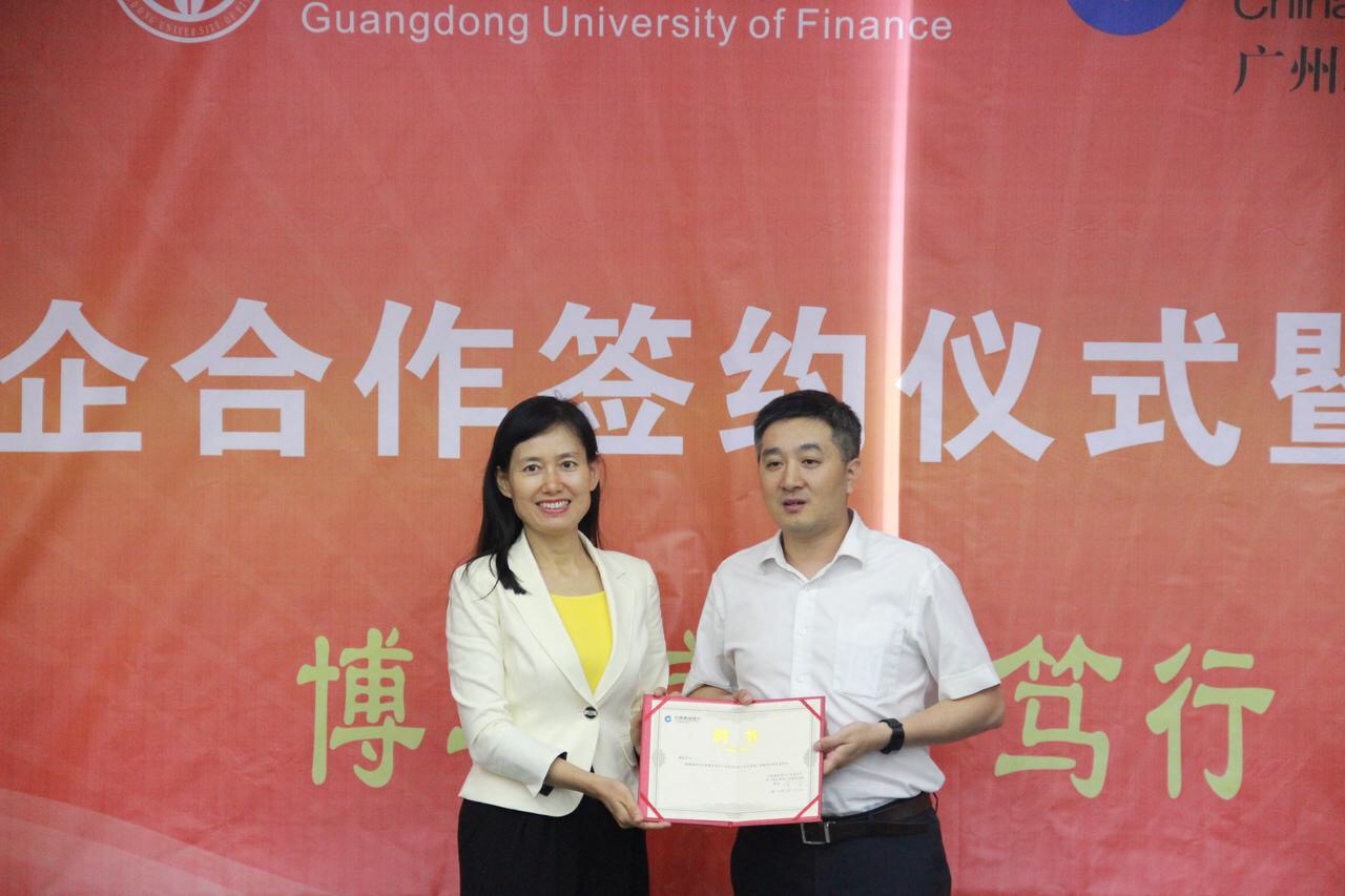 随后,贺永军和穆林分别代表银校双方签署了《校企合作协议书》。穆林代表学校向建行越秀支行颁发了创新创业实习实践基地牌匾,及向贺永军行长颁发了广东金融学院创业导师聘书。贺永军行长也代表建行向穆林教授颁发了员工成长学院越秀分院名誉院长聘书。签约仪式后,在建行领导的邀请及陪同下,参观了该行的成长学院及党建工作基地。