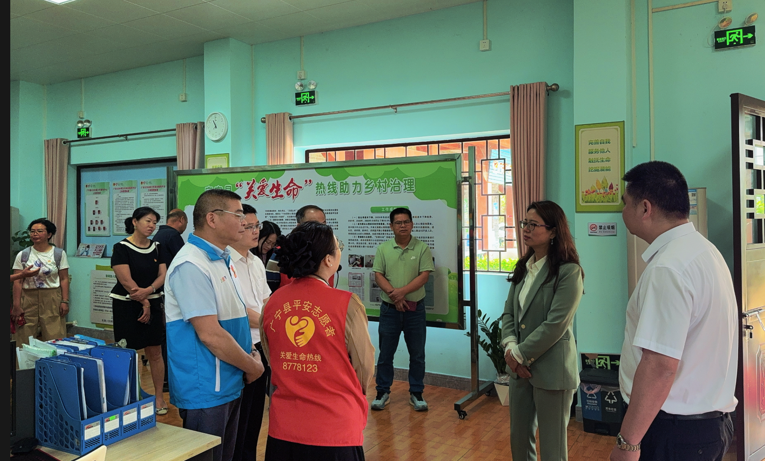 当天上午,团队来到广宁县“关爱生命”热线服务中心,与当地工作人员展开深入交流,针对热线的运营模式、心理咨询流程、危机干预机制等方面提出了建设性意见。师生们现场交流了心理疏导的技巧和方法,为热线工作人员提供了专业指导,助力广宁县生命热线志愿服务质量的提升,为当地志愿服务筑起更坚实的保护屏障。
