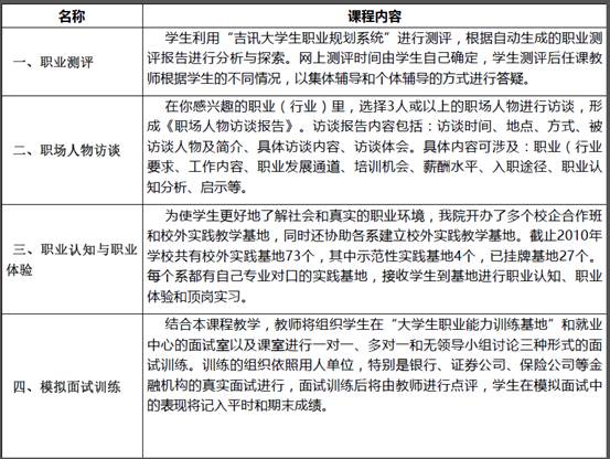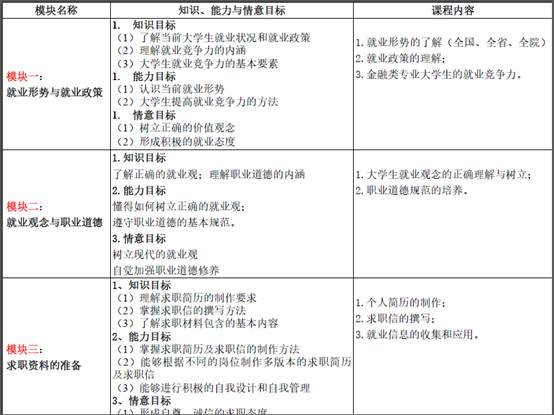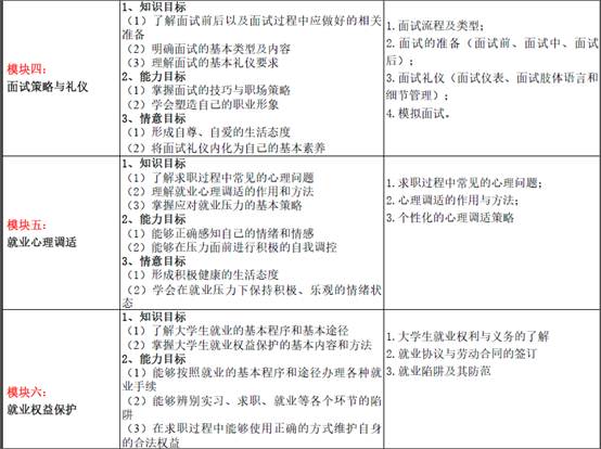 l 2009年,我院构建以就业为导向的人才培养方案。本课程仍被列为公共必修课程。主要侧重就业政策解读和求职面试技巧讲授等内容。